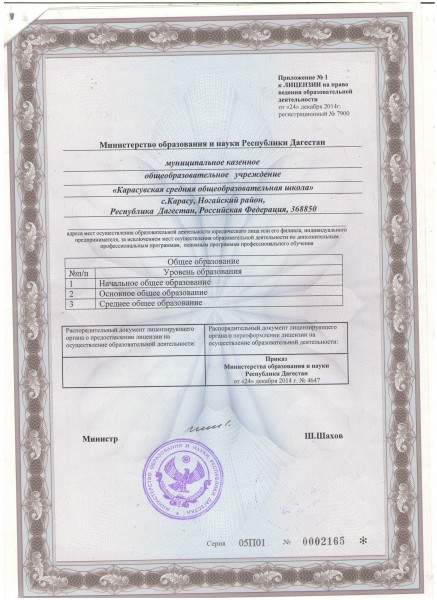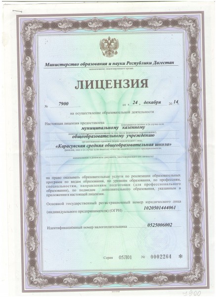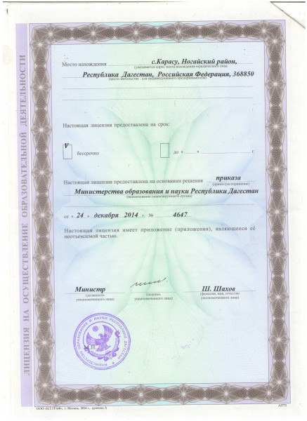 | Адрес местонахождения образовательной организации* | 368850,Российская Федерация,Республика Дагестан,Ногайский район,с. Карасу . |